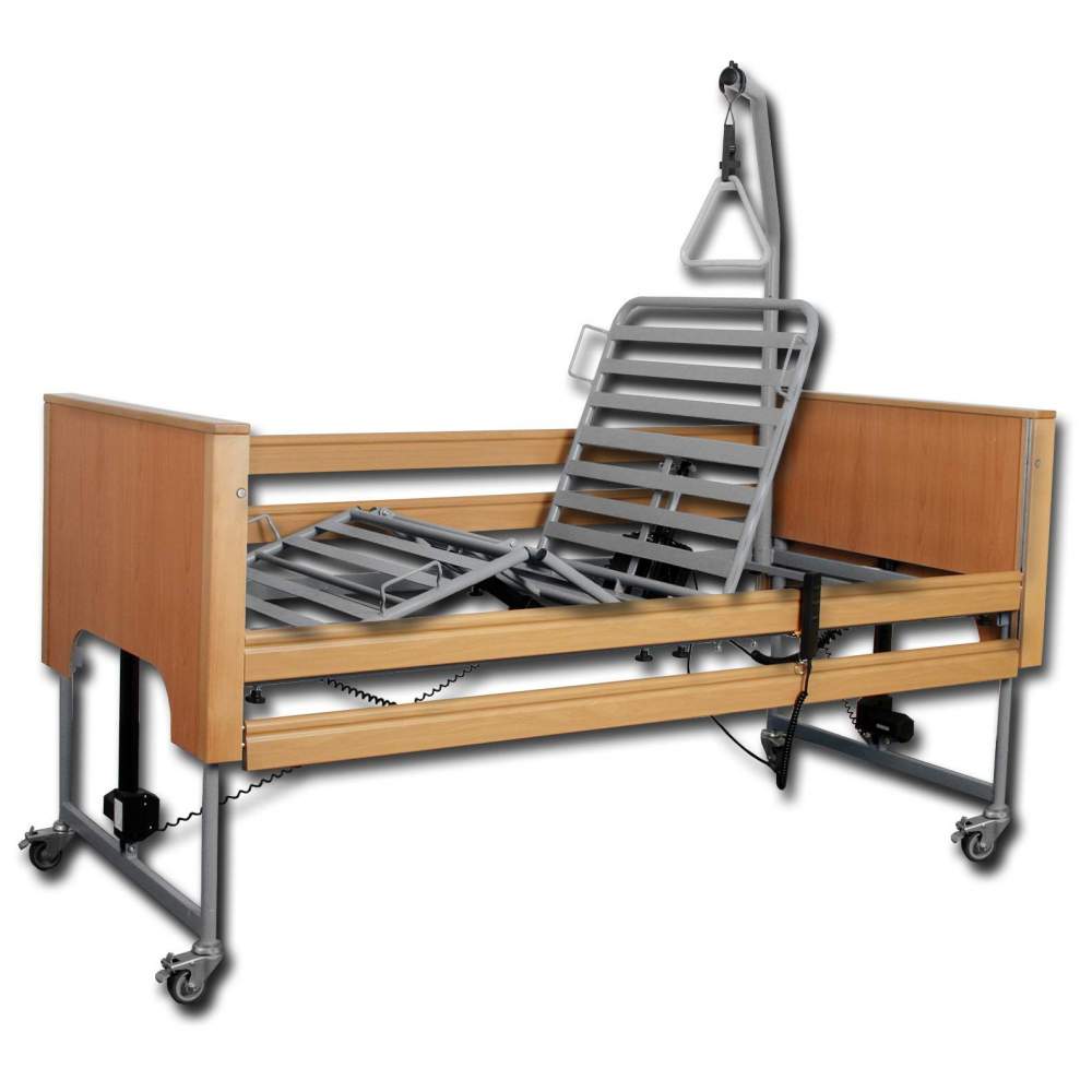 Cama articulada elétrica com estrado articulado de 90cmx200cm e altura variável de 385cm a 81cm. Com 4 rodízios de 100mm.